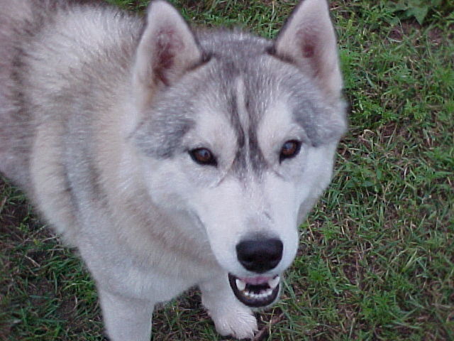 "Cera" was our replacement puppy for Niki (even though we kept both of them). She, too, was born in Phoenix, Arizona. She was named after the Triceratops in the movie The Land Before Time, which my sons were enamored with at the time. She was gray & white. Cera was a very solid Siberian, structurally. She always did well at the shows, but did not enjoy showing off. She would prefer to curl up on your lap. Somehow, through a fence and unbeknownst to us, the lovestruck Koko managed to breed her on her first season. This happened to coincide with our move back to Minnesota. We drove all the way up here with this poor bitch nearly full term. She didn't show until 5 days before she had the puppies. A very POOR vet told us she had a month to go, and surprise! she had puppies 3 days later. She had 5 puppies, (although one died at 3 weeks): 3 gray (all girls), 1 black (girl), 1 red (boy). She was the very BEST mother. She is now spayed after a scary bout with pyometra. Cera used to be the alpha female, but has since lost that title to Meghan.